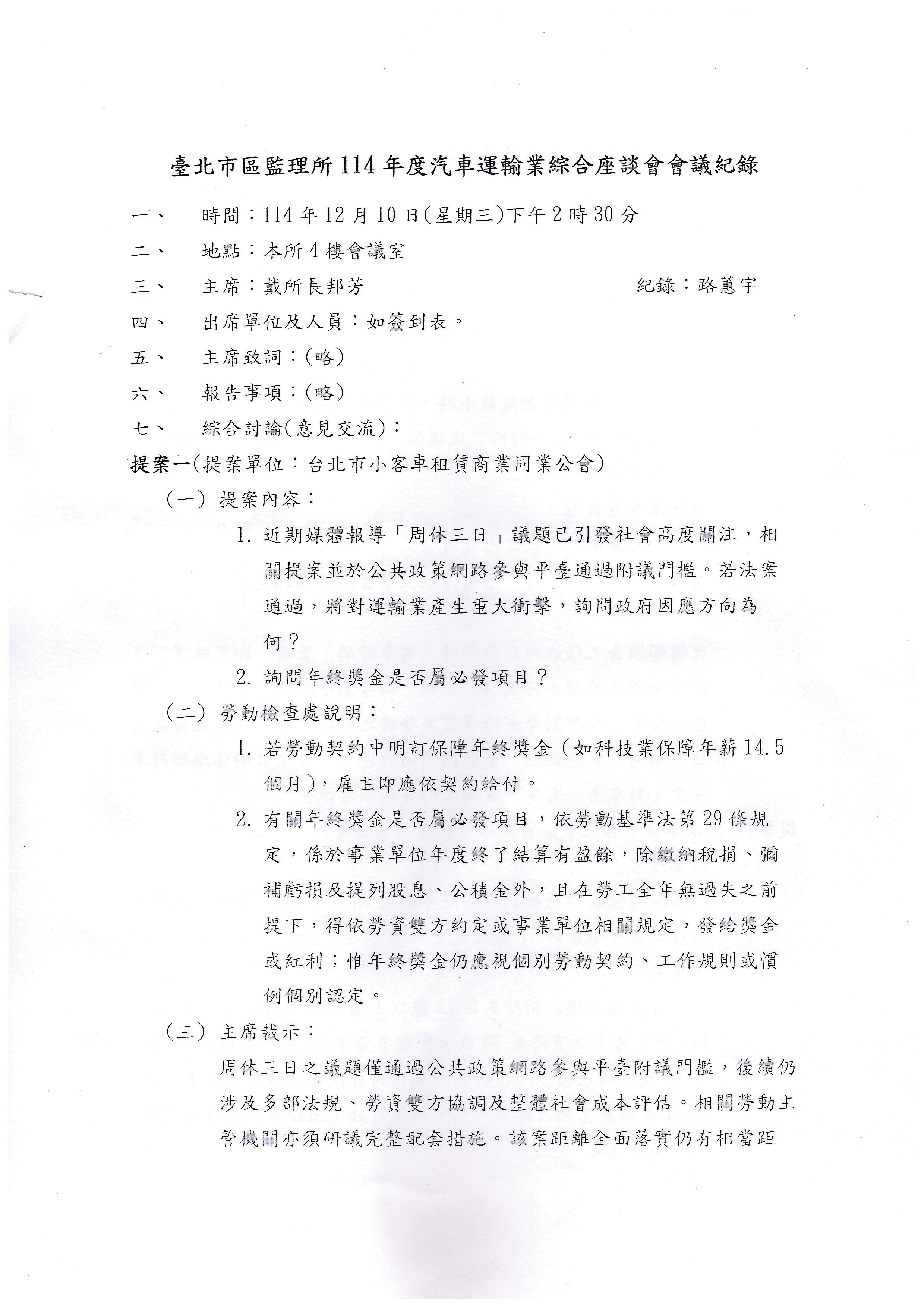 2025.12.10日臺北市監理所114年度汽車運輸業綜合座談會會議記錄